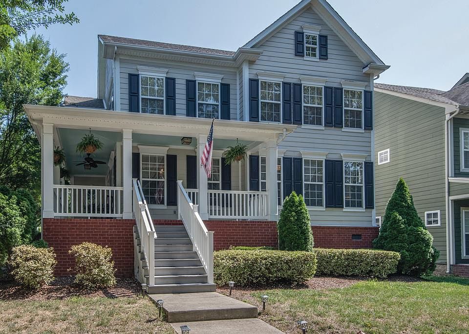 This corner lot house with a wrap around porch is freshly painted with hardwoods, updated lighting, vaulted ceilings, SS appliances, W&D included, granite counters, tile Backsplash, Lg Island & 2 Fire Places. Three of the bedrooms have their own full bath and large closets. HOA includes all lawn care including mulch and hedge trimming.