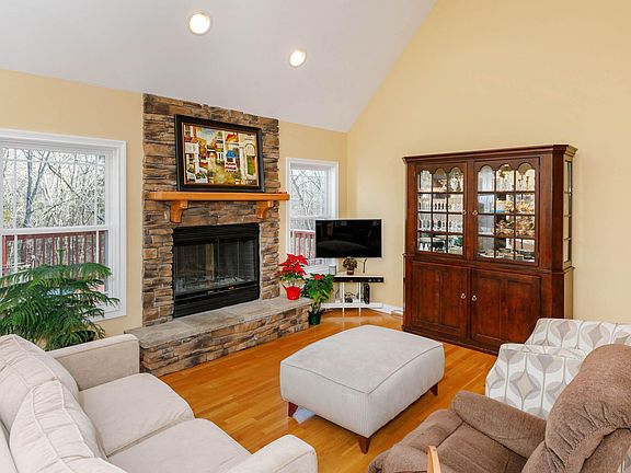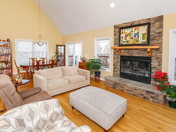 Fabulous home ready for your family and entertaining. The living room has a wood burning fireplace with windows on either side to enjoy the beauty outside. The room flows into the dining area with doors leading out to a deck. The kitchen boasts two pantry areas- a cook's dream. A breakfast bar is handy for a quick breakfast or to keep the cook company while preparing dinner. Hardwood floors in living, dining and master bedroom; ceramic tile in kitchen and bathroom A half bath for guests conveniently located near the living room. Upstairs is a spacious loft overlooking the main living area, 2 generous bedrooms and a full bath. Plenty of storage space in the area. The downstairs is incredible. First you come to a ''mezzanine'' area with refrig, sink and cabinets. Also large half bath. Down a few more stairs you will be in the enormous family area that walks out to patio. The backyard backs up to a wooded area and the sellers added a small pond with waterfall near the back patio for relaxing during the warmer weather.