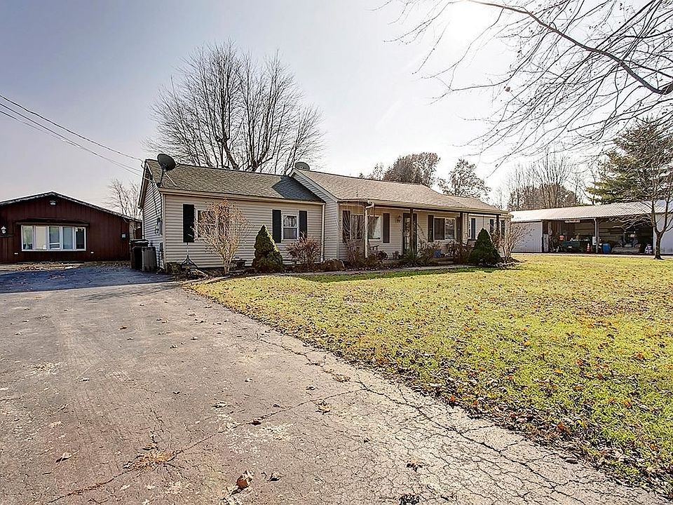 So many possibilities! Sprawling 1800 sqft home offers split floor plan w/ optional in law suite. Tile kitchen w/ SS appliances. Master w/ attached bath, updated HVAC, windows & new carpet. 24X32 detached building w/ living quarters & 26X87 pole barn, electric, water & heat!