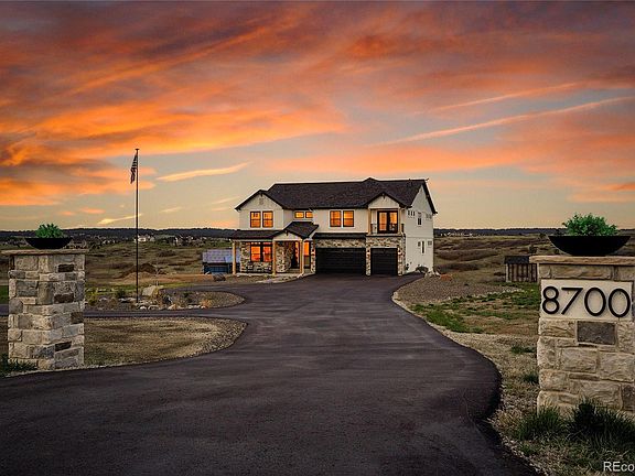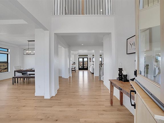 Breathtaking Mountain & City Views & Modern Elegance on 3+ Acres! Experience the perfect blend of country charm and modern convenience in this stunning home, just moments from town. A picturesque Dutch front door welcomes you into a grand entryway. Bright, open living and dining spaces set the stage for luxurious living. The gourmet kitchen is a chef’s dream, featuring JennAir appliances, a built-in Scotsman ice machine, quartz countertops, a sprawling island, and an impressive appliance pantry with KitchenAid beverage refrigerator. The entertainer’s family room is designed for ultimate comfort and style, with a Frame TV, surround sound, custom built-ins, cozy gas fireplace, and three sets of French doors that open to the covered deck for seamless indoor-outdoor living.The main level also includes a private office with built-ins, a laundry room with two LG washer/dryer units and a deep sink, plus a stylish ¾ bath. Upstairs, an open loft bathed in natural light offers a versatile retreat with a wet bar, complete with sink and beverage fridge/freezer. Step onto the deck to breathtaking mountain and city views. The luxurious primary suite features a fireplace, private deck overlooking open space, and a spa-inspired private bath with soaking tub, walkthrough shower, dual vanities, and spacious walk-in closet. Three additional bedrooms and two more bathrooms complete the upper level. The walkout basement provides even more flexibility, featuring an entertainment area, dedicated gym, powder bath, and a sunlit bedroom with walk-in closet and private bath. Set on over three acres, the property is a true retreat with new landscaping, fenced garden with raised beds, chicken coop, and an expansive driveway with ample parking. The generous lot offers endless possibilities—add a guest house, sports court, or even an in-ground pool. This exceptional home effortlessly combines modern luxury with country serenity, offering privacy, space, and convenience in one spectacular package!