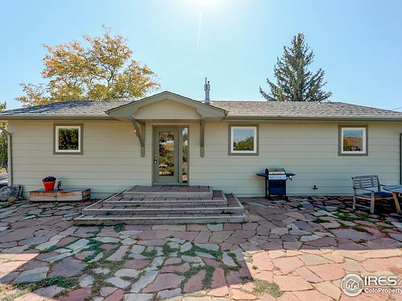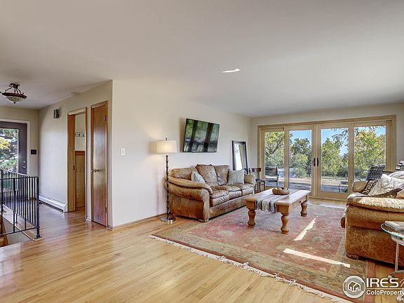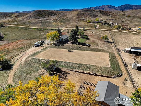 Country paradise. Fall in love with this majestic horse property featuring pristine horse facilities & unmatched views in all directions. Tucked away on a country road, a running & biking haven, this property offers tranquility & close-to-everything convenience. You are welcomed in by a stunning stone patio. Immediately upon entering the sundrenched home, you will notice the wood floors & bright windows. Eat-in kitchen provides perfect sunrise views out the new 16' living room sliders. 2 secondary bedrooms are spacious & bright. Owner's suite accesses the new deck that overlooks the 175' x 75' arena that is laser leveled and has professional quality footing. 2 year old, thoughtfully designed custom barn is outfitted with rubber mats in the stalls, Dutch doors, large runs, asphalt aisle & hay storage. Double oversize barn doors provide a great breeze, natural light & VIEWS. New polycoated horse fence throughout & mud free pens make for a horse lovers dream. Studio apartment on lower level would make perfect guest quarters or rental for income potential. Endless possibilities for lower level bonus space and would make excellent rec room. Colorado lifestyle at its finest in this peaceful setting w/seasonal creek, fruit trees, & infinite views.