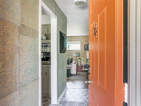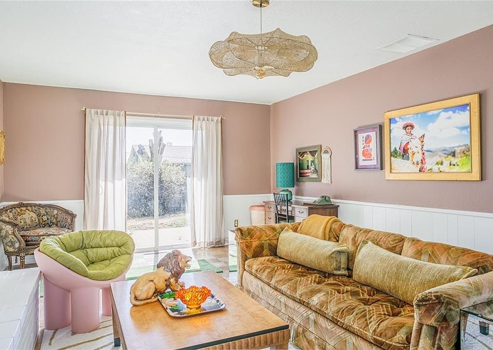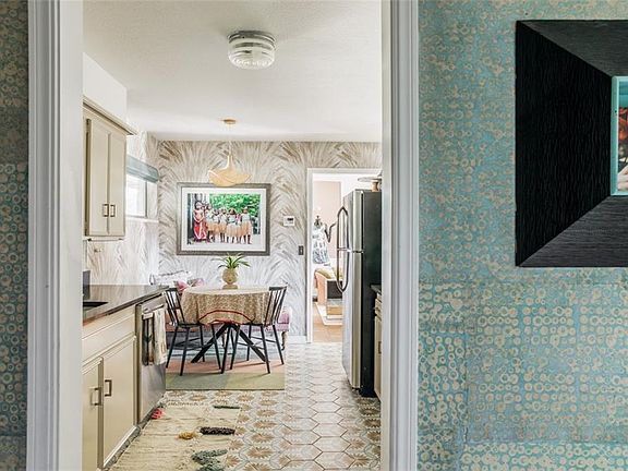 Wonderfully eclectic with a mid century modern flair best describes this exciting home! Filled with unique wallpapers throughout, new herringbone wood floors, and a fun encaustic tiled kitchen floor! The home features a formal living room, cozy den with wood burning fireplace and an eat in kitchen! Sliding doors from the den take you outside to the newly poured patio that you can make your own! Updated bathrooms and large bedrooms complete this stunning professionally designed home! All appliances stay with the property and all the furniture is negotiable! Fresh paint, wonderful light fixtures, new sewer line and plumbing line under the home as well as a new hot water heater add to this remarkable home!