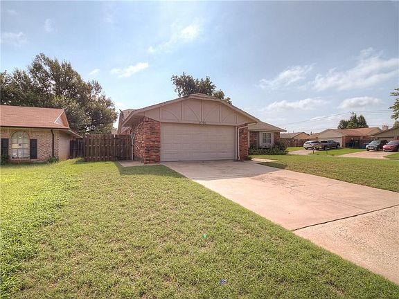 Charming home in a beautiful neighborhood with walking distance to the Northridge Elementary school. This house welcomes you into an open living area with natural lights from the backyard glass doors. The brick-wall fireplace and builtin bookshelves adds to the coziness. The beams on the ceiling gives the living area a decorative element. The kitchen has plenty of cabinets and is semi-open into the living room. At the extension of the kitchen, you will find the dining area. The hallway leads to the bedrooms, guests bathroom, and a larger master with an updated Master bathroom. The house entails a larger flat backyard surrounded by a newer steel-post fence. The sellers' three favorite features: 1. Neighborhood, 2. Easy access to Kilpatrick Turnpike and NW Expressway, and 3. Close to shopping, entertainment, and hospital. The roof is from September 2018. Chimney was repaired in 2016. The Side garage door has been replaced in August 2018. SELLER OFFERS BUYER $500 IN CARPET ALLOWANCE.