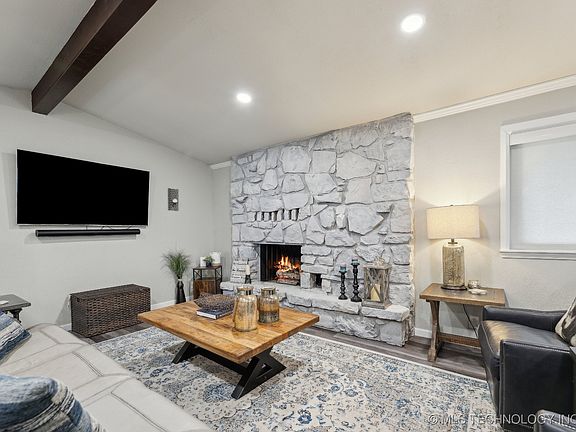 Stunning 5 Bedroom Estate in Jenks Schools! Nestled in a serene setting, this magnificent home is a nature lover's paradise, boasting 1.25 acres of lush land teeming with wildlife, birds, and fruit trees. Enjoy the tranquil atmosphere and picturesque views from the expansive TrexPro decking surrounding the entire home. This incredible property has undergone a complete remodel in 2023, showcasing modern luxury and sophistication, featuring a state-of-the-art kitchen with granite, stainless steel appliances, huge pantry and theater room with a mini kitchen. The sprawling grounds offer a cozy fire pit, dog run with lush turf, raised VEGO garden, and abundant wildlife and bird-watching opportunities. Conveniently located near Tulsa Hills, highways, and schools, this home also boasts remote shades that allow you to integrate with smart home apps for ease, stunning exterior design, epoxy floors in the garage, 30 x 50 heated and air-conditioned workshop, a full-home generator, MistAway Mosquito System, hard wired outdoor camera system, and a sprinkler system that irrigates the entire lawn. Additional features include two washer and dryer hookups, perfect for a large or growing family - a true piece of paradise!