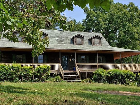 If you are looking for a rustic country home on over 5 acres, you will love this home!! Cedar-sided cape cod style with full wrap porch and full basement with half bath, a "honey room" that can be used for workshop or man-cave, and a ton of space for cars and workshop!! Inside on the main floor, you will find a huge great room with rock fireplace, formal dining room that opens to the kitchen with island, and a master bedroom with bath that includes the laundry area. Upstairs are 2 more large bedrooms and another huge master bedroom with a large bathroom with a garden tub and double vanity!. Located along the Rocky River, you will be able to go fishing anytime you like!! Tons of wild-life ( fox, deer, etc) to enjoy while sitting on your huge wrap porch!! And several storage buildings are included along with a metal carport that you can have at least 4 cars under!! Don't miss this fantastic opportunity!!