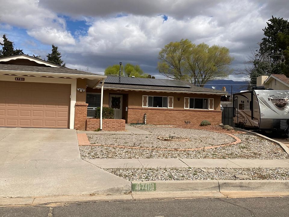 Gem in Uptown QUICK, grab this one before it's gone. This is not the typical tried, old, boring rental. This gem in the desired Uptown area is warm, inviting and fun. It is 3 bedrooms, 2 bathroom 1700 sq ft. New flooring, fresh paint with pops of color. 2 living areas, laundry hook ups, 2 car garage. There is side yard access with an extra driveway so bring all your toys. Refrigerated air, solar, so electric bills are about $10 a month, even in the summer. A fun quiet backyard with a covered porch. There is a shop in the back with electricity, perfect for a she-hut or man cave. All of this just minutes away from Uptown shopping, freeway access and Kirtland AFB. Great schools, Bellehaven, Grant, and Sandia. To top it all off its on a cul-de-sac street. Privately owned and landlord lives nearby. Reach out to set up a tour. Owner pays water. Renters are responsible for $2000 rent plus gas and electricity monthly. Small dogs up to 30lbs welcome, $300 pet deposit. $1000 damage deposit. Renters are responsible for keeping landscape weed free and watered. Smoking of any kind not allowed indoors. Application fee required. Minimum one year lease with thirty day move out notice required. Landlords own property and live nearby.