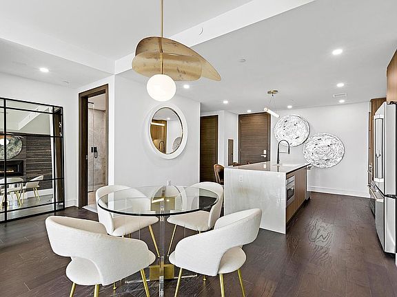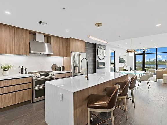 Ideally situated between Edgewater and Weehawken with stunning views of the Hudson River and Manhattan skyline, each of Solaia's spacious east-facing residences features expansive, double-pane windows, dark espresso flooring, custom closets and living rooms with gas fireplaces. Chef-inspired kitchens boast custom Italian cabinetry, SapienStone countertops with waterfall islands, and stainless steel GE Café Series smart appliances. En-suite five-fixture baths flaunt Seedwood tile feature walls and freestanding tubs for a spa-like experience. Smart lights, thermostats, and Latch keyless entry, along with an in-home, full-size washer and dryer, make life here as convenient as possible. Each home includes one deeded garage parking spot with additional parking available for purchase. The 10,000 sq. ft. of amenities include a three-story wellness center with a yoga room, TRX equipment, boxing space, a steam room, sauna, rainfall shower, a Himalayan salt inhalation therapy room with infrared relaxation beds, a jetted vitality tub, and a dressing room with personalized lockers. There's also a cliffside roof deck with a custom outdoor demonstration kitchen, BBQs, dining areas, firepits, and lounge seating, along with a co-working space, resident lounge with fireplace, billiards and ping pong, a demonstration and event space, and a dog run. Solaia is located in North Bergen, just moments away from the George Washington Bridge, Lincoln Tunnel, Hudson Bergen Light Rail, and NY Waterway Port Imperial Ferry Terminal, as well as near an abundance of shopping, grocery and nearby attractions.