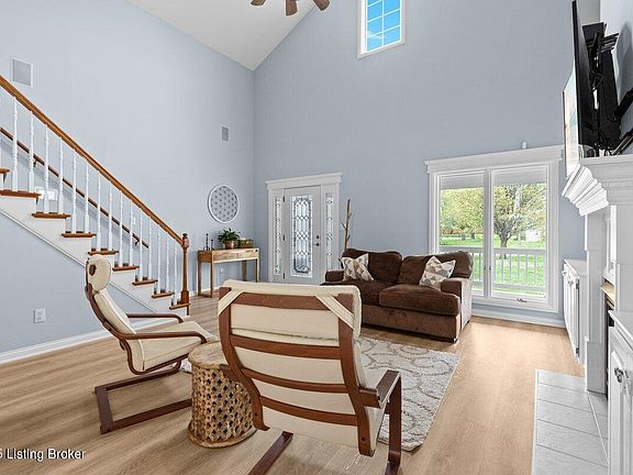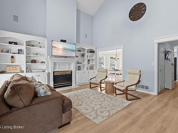 Great cul-de-sac home with charming wraparound porch! This one has been nicely updated and has so much to offer. Spacious living room with vaulted ceiling, built-in cabinetry, and fireplace with gas logs. Easy-care LVT flooring is throughout the main level. The dining room is open and features a bay window providing great natural light. The kitchen has a breakfast bar and pantry and has been updated with quartz countertops and stainless steel appliances. Just off the kitchen and two-car garage is a large main hall with a powder room for guests as well as a well-organized laundry closet. The primary suite is also on the main level, with space for king-sized furniture, a walk-in closet, and a private bath with whirlpool tub, shower, and large vanity. The second floor has three additional bedrooms. Bedroom two is very large with a walk-in closet. Bedroom three is adjacent to the hall bath, and bedroom four is located off the large playroom/game roomwhich makes for great flex space. The upstairs hall also includes a linen closet for added storage. There's even a craft room with built-in cabinets, perfect for hobbies or organization.