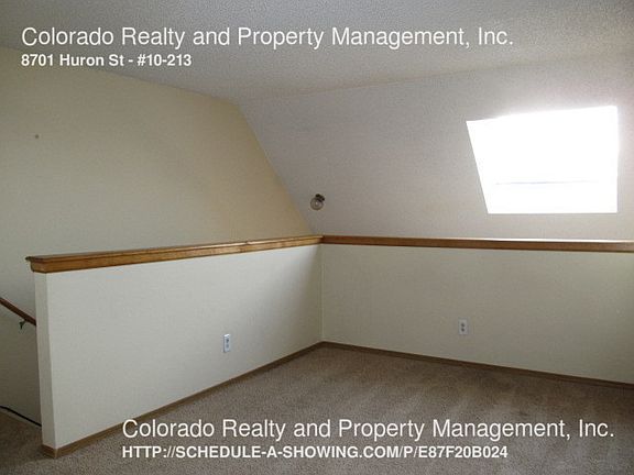 SCHEDULE A SHOWING ONLINE AT: showmojo.com/lh/e87f20b024 Cute 720 square foot 2nd story loft with one bathroom. Inside features include all major appliances, including a washer/dryer and central AC. Also includes a walk-in closet, wood burning fireplace, vaulted ceilings, open floor plan, private patio,and lots of storage in the kitchen. Unit is west facing with wonderful Colorado views. Great location close to restaurants, shopping, and more! Easy access to I25 and HWY 287. Pets are allowed at the owner's discretion with an additional deposit and references however, no dogs of an aggressive breed. The list of aggressive breeds can be found on our website at the following link: This property is a Non Smoking property. We are pledged to the letter and spirit of the U.S. Policy for the Achievement of Equal Housing Opportunity throughout the Nation. We encourage and support a program in which there are no barriers to obtaining housing because of Race, Color, Religion, Sex, Handicap, Familial Status, or National Origin. All applicants over the age of 18 must submit an individual rental application AND pay a non-refundable $50 application fee. The following criteria must be met in applying: TransUnion Vantage score of 620 or above. A score of 619 550 will require additional deposit and a risk administration fee. All scores below 550 will be declined. Gross income must be equal to 3 times the monthly rent. Applicants must provide pay-stubs covering 30 consecutive days of gross income. If self-employed, tax returns must be provided. No felony convictions of a violent or sexual nature or that involve methamphetamine or arson. Regarding previous rental history, no evictions or outstanding balances. Applicants will also be required to provide a copy of a valid form of identification. Before applying for the home please verify that the property is still available under the Available Properties tab. All application fees are nonrefundable. The accuracy of this ad and current availability of this property can only be verified by visiting www.ColoradoRPM.com. All other outside sources should be deemed unreliable. All photos are of the actual property unless noted are only representative of the size and space of the interior. Applicants must view the property in person to determine if the size and space of the property is acceptable to their needs and wants. No properties will be rented "sight unseen". We require at least one person that is going to be on the lease views the property before applying. If you are applying for a property without viewing it first, your application may be denied. IMPORTANT: Applicants will have 24 hours from the time they view the property to submit a completed application including the required documentation. Only complete applications will be considered. For questions and more information, please email: Showings@ColoradoRPM.com Assigned Parking Central A/C Shared Yard Stove Washer/Dryer Wood Burning Fireplace