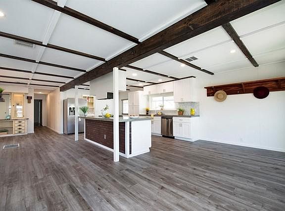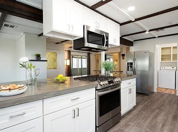 Centrally located, remodeled home with large sun room in the Greenbrier Garden Mobile Estates family park! This 2 bedroom 2 bath home boasts, brand new laminate flooring throughout, spacious, open kitchen with new cabinets, concrete countertops and stainless steel appliances, newer windows offering plenty of light. Off the kitchen you will find the laundry room, pantry and dining room with built in hutch. Tons of storage throughout. The master bedroom features mirrored closet plus 2 walk in closets found in the en suite which offers his and her sinks, soaking tub and vanity. The 2nd bedroom has mirrored closet and built in cabinet and drawers. Fresh interior and exterior paint, 2 large sheds and more! Come see this well maintained home! Space rent is $980.14