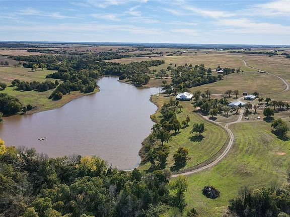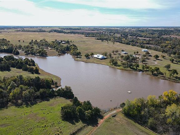 The 65 ranch is unparalleled in opportunity! 484 +/- acres with 2 beautiful homes, multiple barns, shop, round pen with roof, hay barns, working pens and squeeze chute, 7 water wells, working windmill with tank, pipe fencing, hay meadows, pastures for grazing, box blinds with food plots and feeders, and a beautiful 17 acre lake along with 3 other additional ponds. Location is great with the town of Crescent nearby and Guthrie is a short 15 minutes away. The OKC metro is 40 minutes and is an easy commute down Highway 74. The privacy on this ranch is ideal. The main home completed in 2023 is located on the central west side of the property down a mile long private drive. Outside the home is a complete wrap around porch. The back porch has an unobstructed view of the entire lake! Open floor plan design with the main living open to the kitchen and dining. The north side of the home has 2 bedrooms that share a full bath, office, guest 1/2 bath, mudroom with full bath, washer/dryer, and sink. The south half off the main living is a master suite with huge walk in closet, 2 sinks, walk-in shower, and a free standing tub. As you drive to the new home overlooking the 17 acre lake you pass the 27 stall horse barn along with views of the pastures, pipe fencing, and the other main buildings close to the home. The ranch has 1.25 miles of road frontage and has plenty of entrances to pastures for baling hay and checking livestock. The additional home on the property has been completely remodeled and would make a great guest home for friends and family or an additional residence for hired hands. It is a 3 bed 2 bath with sunroom. The master has its own bath, and the other 2 bedrooms share a bathroom. The main living has a fireplace and is open to the fully remodeled kitchen. Underground basement with washer/dryer, hot water tank, and pressure tank for well. Outside the guest home is a detached garage and gated entrance with operator. Too many additional items to list!