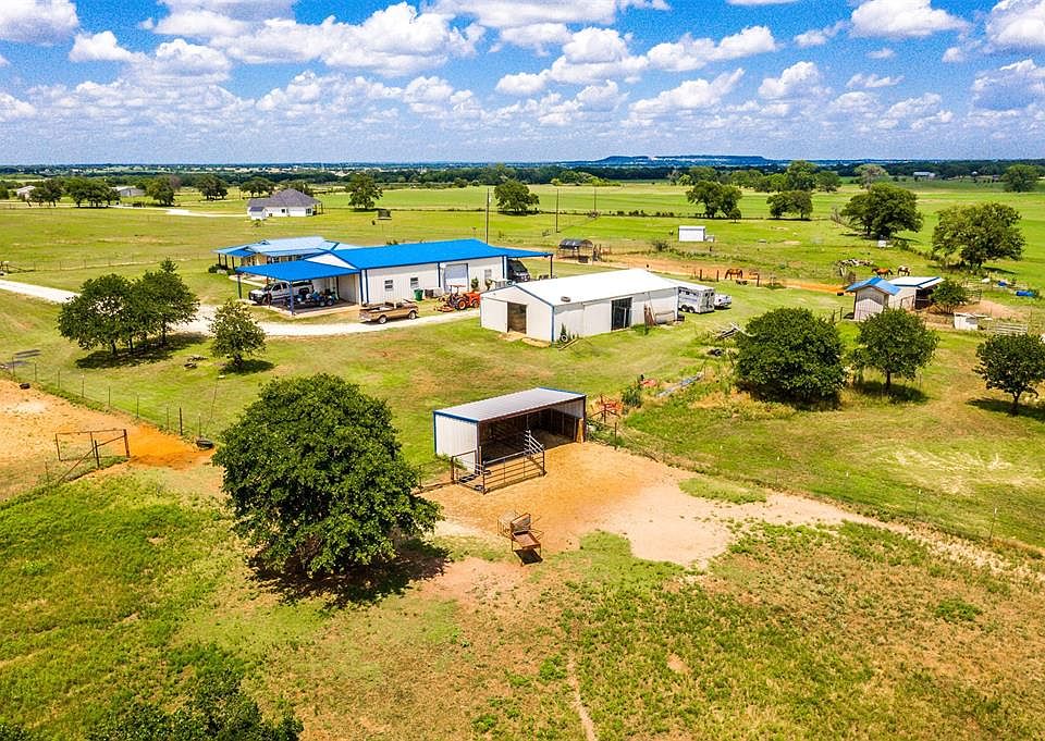 15.077 HORSE FARM priced under appraised value. Country style military-built home with a beautiful view. This home has two bedrooms, open living room, galley kitchen, with wrap around covered porches to escape the Texas sun. This would be perfect for a horse facility with a hand or a family in need of multiple living spaces. In addition to the home, there is 1200 sq. ft of full living quarters on the backside of the 40 X 60 heated,air conditioned shop that has 20 X 22 covered awning on front and a 20 X 20 covered awning on the back, perfect for your RV or trailer. 30 x 50 barn, two 12 X 24 loafing sheds, one stock tank, with pastures that are fenced,cross fenced. This is a beautiful ranch at a wonderful price.