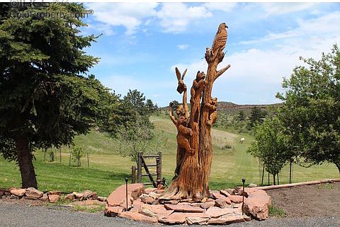 Paradise living!! Gorgeous custom home w/ incredible views on 5 acres. Beautiful tree carvings. Slate & hardwood flooring. Solid pine cabinetry. Fireplace. Many different outdoor areas for entertaining & abundant wildlife watching. Fruit trees & water feature. Multi-level trex deck w/ steel frame & custom iron railings. Boat house, sheds & workshops. RV pad w/ electric & water, car lift. Private archery range, sledding hill. Mini basketball court. Walk to Carter Lake. Too many features to list!