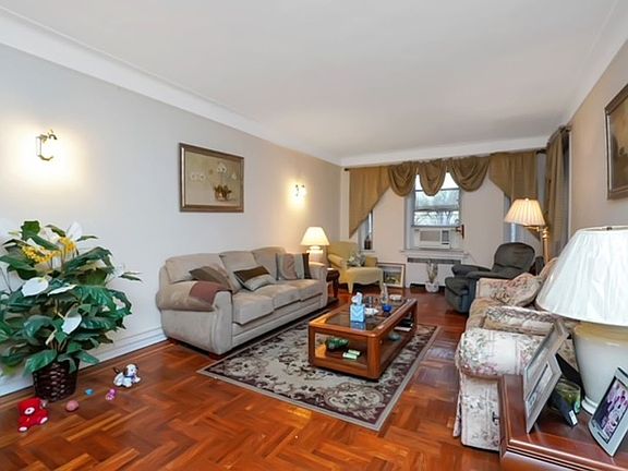 Enjoy living in one of the most sought after buildings on Shore Road! This unit boasts 1000 square feet of pure Art Deco charm. From the massive living space to the soaring ceilings and classic 1930's archways as well as the stunning parquets and floor-to-ceiling walk-in closets, this appealing coop is truly representative of the pre-war period of sophisticated architecture & design. Upon entering you are greeted by a traditional foyer adorned with archways and crown moldings with a fluid layout complete with 2 huge walk-in closets, windows with multi exposures and lovely hardwood flooring. The foyer can easily function as either a formal dining area or home office. The sprawling living room faces Shore Road and has 4 windows to enjoy the stunning sunsets and water views. To say that the bedroom can accommodate a King size bedroom set is an understatement! There is room for all your furniture and still have capacity for a sitting area to read a book or just relax at the end of the day. The huge closets provide maximum storage and organization. The full eat-in kitchen is equipped with ample hardwood cabinetry & counter space, tiled floors, stainless appliances and a separate area near the window which is perfect for a large kitchen table. The windowed bath includes a large tub, separate shower & linen closet. Its neutral tiles & backdrop allow for easy decorating with a myriad of color schemes. The building has recently undergone a lobby renovation and offers many amenities including a live-in super and two laundry/bike rooms. The NYC Express Bus is right outside your front door as are the many beautiful Shore Road Parks. Street parking is very manageable. This is a Dog Friendly building with approval and the maintenance is very reasonable. This apartment is ideal for those looking to downsize from a house.