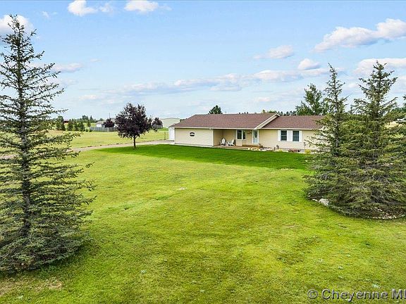 If you missed your opportunity the first time now is your chance! This home is back on the market due to buyer's financing falling through. Welcome home to picturesque 8701 Vera Lane. A harmonious blend of country living and modern convenience your slice of Wyoming is nestled in a tranquil close-in rural setting. This enchanting property offers the perfect balance of seclusion and accessibility just minutes away from shopping and urban amenities. You'll relish in the serene escape that this home provides while having the opportunity to embrace the equestrian lifestyle, with horses warmly welcomed. Step into a world of comfort within this meticulously designed 3-bedroom, 3-bathroom residence, lovingly built in 1999, offering a sprawling 3068 square feet of space. The charm of this home continues to the interior, where solid surface Corian countertops and warm oak cabinetry grace the space. Skylights in the upstairs bathrooms illuminate your daily routine, infusing them with natural light and warmth. The main bedroom, complete with an ensuite bathroom, provides a private oasis of relaxation. Each room is thoughtfully designed to enhance your living experience, promoting both comfort and functionality while you revel in the coziness of real wood trim and windows that exude timeless appeal. As you approach, the allure of mature trees embraces you, creating an immediate sense of serenity. The meticulously tended sprinkler system graces both the front and back yards, fostering a harmonious combination of wild prairie and lush, velvety lawn. Experience the embodiment of convenience and functionality with a 2-car oversized attached garage, boasting a generous 24 x 27 dimension, offering ample room for vehicles and storage. Additionally, a single car detached garage beckons with versatility, ready to become your she shed, tractor haven, or a space for your imaginative pursuits, measuring 12 x 24. Settle into the embrace of nature on this expansive 3.52 acre canvas, allowing your aspirations to take root and flourish. On warmer days, the soothing comfort of air conditioning awaits you, while the basement boasts a spacious workshop area for your creative endeavors or practical projects. This home isn't just a space; it's a canvas for your dreams. The basement extends an invitation for customization The egress windows provide options to create additional bedrooms that accommodate your evolving lifestyle. Above, the Mularkey Legacy Class IV impact-resistant roof stands as a testament to both quality and endurance. Exuding warmth, the vinyl siding seamlessly harmonizes with the natural surroundings, enhancing the home's timeless appeal. Revel in moments of serenity on the covered front porch, a place of reflection and connection, or find solace on the rear deck, a perfect spot to unwind and soak in the surrounding beauty. Elevate your living experience at 8701 Vera Lane, where the enchantment of rural Wyoming living, modern comforts, and endless possibilities converge. Your vision starts here, in this welcoming retreat that celebrates the natural beauty of the land and the warmth of a true home.
