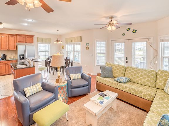 PERFECT BEACH WINTER GETAWAY SHORE BEATS WORK is just one block to the oceanfront and beach access, you will find yourself in a quiet, pet-friendly, family-focused neighborhood far away from any public crowds. The beach is pristine here, and you can spend your days running back and forth from the house as much as you want because it is so close. A spectacular sunset view of the sound awaits you from the huge covered porch in your roomy master suite. Sunset views from the dining table and living room porch will be the highlight of your stay. Multiple workstation locations for your "work from home" job, well if you can get any work completed, hence the Shore Beats Work name. This four-bedroom home, each with access to a bathroom creates sleep-time comforts. A great room holds a gathering space to create family beach memories year after year. With easy-to-clean Pergo floors and plantation blinds throughout, you are sure to feel casual and comfy for the whole off-season beach getaway! Shore Beats Work is fully furnished with a fully stocked kitchen. All utilities are included (with a cap). Come stay with us for a month or two!