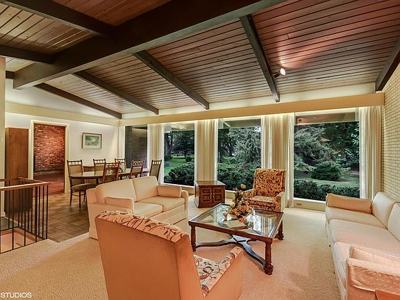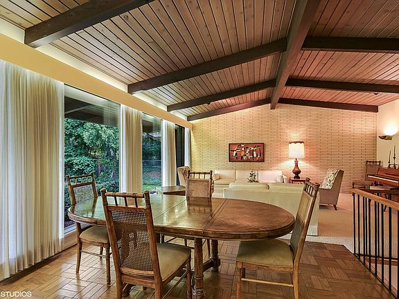 Original owner who custom built this Mid-century- California ranch. Beautiful view of the large rear yard can be enjoyed from the full wall of windows. Family room has full wall fireplace plus in door barbeque with large commercial fan. Furnace 12 yrs, a/c 16 yrs, roof 10 years, commercial indoor grill & fan, leaf guard, Ponderosa pine ceilings, Pella windows, newer slider windows.
