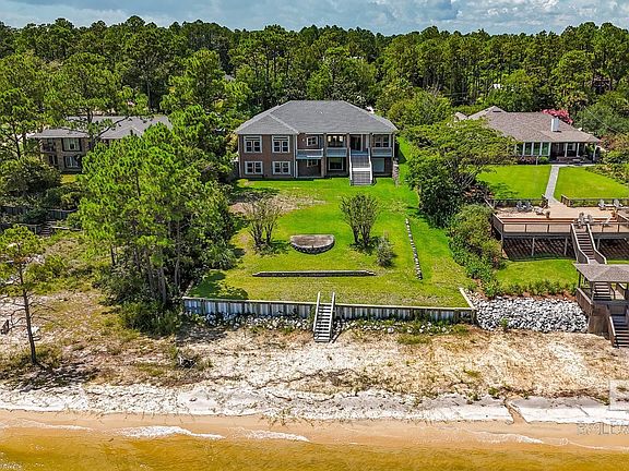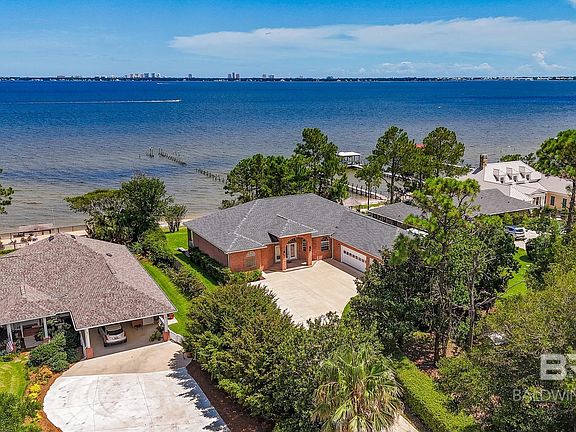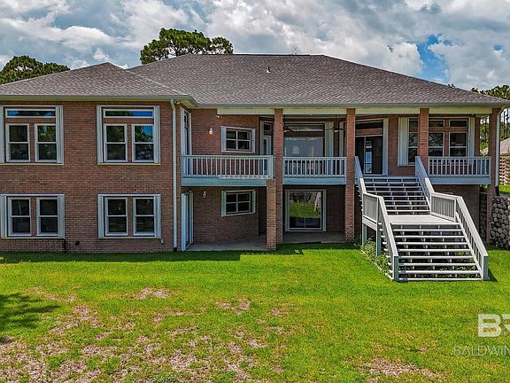 Elegant living on the exquisite Red Bluff of Lillian overlooking beautiful Perdido Bay! With the bluff being 30 feet high....no need for flood insurance!! This one of a kind home offers something for everyone! Having 4 bedrooms and 4 and a half baths there's room for large families that need extra space, in-law space and it is a magnificent entertaining home as well. The elevator or stairs can take you to the lower level that is tucked away into the side of a hill, so it's a half basement which will also provide you with the ability to stay home safely in the event there is a storm brewing. It is also equipped with a backup generator to power the home in case of an outage and storm shutters to protect every water facing window. The upper and lower levels each have 2400 square feet and are kitchen equipped, den areas, 2 bedrooms, bathrooms, laundry rooms and storage for days!! One lower level bathroom even has a hairdresser sink and chair!! The main level kitchen features all new top of the line appliances and has a an elegant dining room. The primary main level bedroom is expansive with beautiful windows offering a gorgeous bayfront view. The primary bath is huge with large closets. Decks lead out from the master and the main living area for spectacular views as well. The orange moon viewing was an event at this home!! This home has new paint, new washer and dryers, new roof, new AC's, new flooring, three car garage, new concrete driveway and newly installed well and irrigation system. You must come see this amazing home. Absolutely lovely area to live and enjoy tranquility. Please call for your personal tour today! Buyer to verify all information during due diligence.