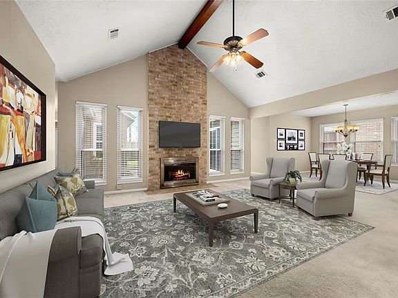 Come see this beautiful home located minutes from Lake Houston. This home features 3 bedrooms and 2.5 bathrooms. There is a flex space that can be used as a home office, children's playroom, or craft room. All bedrooms have large closets, and there is plenty of storage in this home. Large family room with vaulted ceiling and beautiful brick fireplace. As you walk through the home you will notice their is an abundance of natural light. A/C and furnace were replaced in 2017. PEX re-piping in attic only, 2021. Lifetime transferable warranty on Low E windows 2/2015. Home exterior was repainted in 9/2022, and also comes with a 2 year transferable warranty. Sliding glass doors were replaced in 2010. Wood look vinyl installed in laundry, primary bath and secondary bathrooms 12/2022.