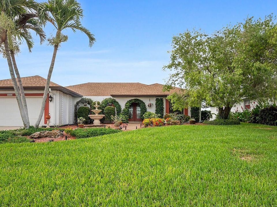 Lakefront Retreat in Bay Lake Estates - Low HOA, High Enjoyment!**Seller to credit buyer up to $13,384 towards a 2-1 Rate Buydown, or Closing Costs & Prepaids, at the discretion of the buyer.***Seller is offering 1-Year Home Warranty*Welcome to this beautifully maintained 3-bedroom, 2-bath split-bedroom home nestled in the sought-after Bay Lake Estates community"just minutes from the quartz sands of Bradenton Beach and its breathtaking sunsets.Enjoy serene lake views and cool, comfortable outdoor living year-round from the north-facing screened lanai. The expansive outdoor space includes a 9-foot-deep, 20,000-gallon private pool, a hot tub, and a tranquil koi pond, all surrounded by a durable overbuilt pool cage with 2" x 8" rafters designed to withstand high winds. Step outside to the private outdoor shower"perfect after a swim or beach day.Inside, you'll find hardwood floors throughout the main living areas and guest bedrooms, and terra cotta tile in the spacious primary suite. The updated kitchen features soft-close cabinetry, granite countertops, and a pass-through view to the lanai. The primary suite offers direct lanai access, two large dressing rooms, and a beautifully upgraded bath with a glass-enclosed shower. Additional sliders from the living room, kitchen, and guest bedroom allow natural light and easy indoor-outdoor flow.This solidly built home sits at 12' elevation and features a hip roof, hurricane shutters, and underground utilities for peace of mind. The spacious garage includes a new epoxy-coated floor, and the lush, landscaped yard is fully irrigated with reclaimed water.Recent upgrades & features:HVAC with UV filtration and air purifier, compressor (2017), air handler (2009)40-gallon water heater (2020)Siemens 200-amp electrical panel (2005)Roof replaced in 2016Attic exhaust fanHome security system with 5 cameras4-point inspection completed July 2024Low HOA fees cover lawncare, including irrigation with reclaimed water. This home is a standout for year-round Florida living!