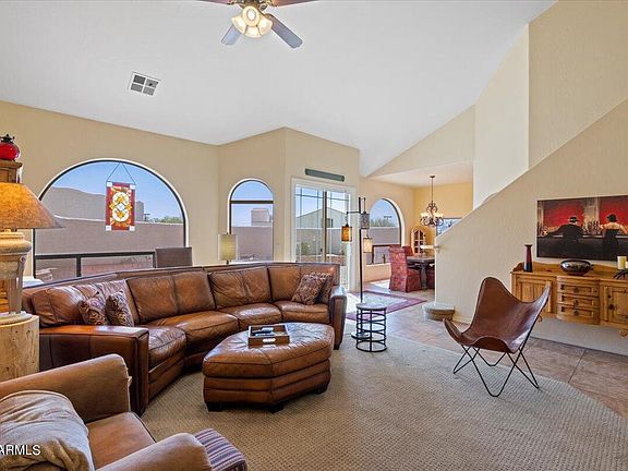 YOU WILL WANT TO SEE THIS SPACIOUS TOWN HOME IN THE SMALL GATED COMMUNITY OF FAIRWAY VIEWS... Lock and Leave, GREAT VACATION RENTAL. Spacious 2 master bedroom townhome, 1 very large master upstairs and 1 downstairs, very quiet. Has a community pool, clubhouse and fitness center. Each bedroom has its own full bath. Neutral colors. Upstairs bedroom has its own deck for those nice mornings and wonderful evenings. Nice courtyard as you enter the gate to this home. Master bath upstairs has separate shower and jetted tub, double sinks and private toilet room. Water is paid for by the HOA ( No water bill to pay).Only pay cable and electric. Close to shopping, restaurants and Gold Canyon Resort. ALL FURNITURE AVAILABLE ON A SEPERATE BILL OF SALE