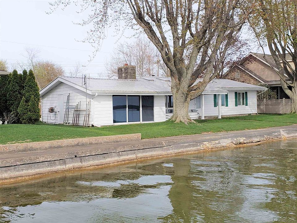 WAWASEE LAKEFRONT WITH 71 FEET OF FRONTAGE....4 bedrooms, 2 baths, a great lake cottage with an excellent view and sandy swimming area. A lake level lot with great views, fantastic sunsets await you as you sit on your pier or porch. Split floor plan with the master on one side, other bedrooms on the other. Open living and kitchen areas keep the chef in the family in touch with all the activities. Most furnishings will stay so that you can start living the day of closing in this home. Needs a little TLC but can be used as is, or it even has great rental potential. Property backs up to a channel and includes a garage and boat house for storing boats and all your lake toys. One of the least expensive homes on Lake Wawasee...don't let this one get away!