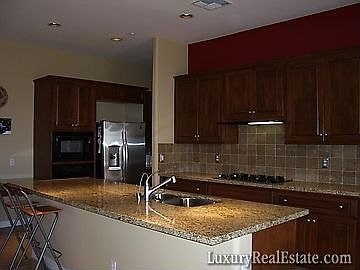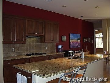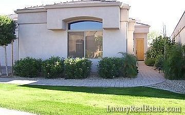 MERDEAUX model (only 5 in the complex) 3 bedrooms, 3.5 bathrooms plus a den with a split floor plan. Immaculate condition. Kitchen boasts large slab granite island, stainless steel appliances with a 5-burner gas stove and a walk-in pantry. Kohler fixtures throughout the home. 12 foot ceiling in great room and 10 foot t/o rest of home. Ceiling fans in all rooms, dual pane windows, neutral carpeting in bedrooms and recessed lighting. Golf course lot with views of Camelback Mountain. North/South exposure with desert landscaping for low maintenance. Heated community pool and spa. Perfect lock and leave home or permanent residence for the discriminating buyer. Furniture available under separate contract excluding art work, dining room table/chairs and sideboard.