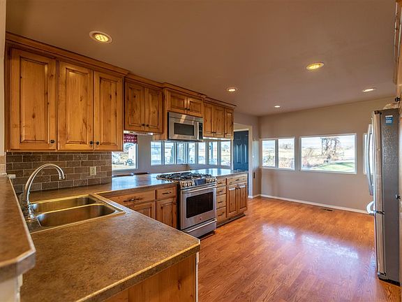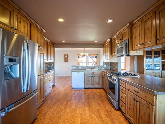 Welcome Home! 3 bedrooms, 2 bathrooms, 2340 square feet on almost 7 acres. Walk in the front door and head to your living area which features a fireplace. The recently updated kitchen features natural cabinets, stainless steel appliances and all the counter space you need. Well sized bedrooms and the perfect sized laundry room. If that is not enough you will love this property! Set up for horses, huge insulated workshop with 200 amp service and a 2nd insulated building with an office. Fruit trees, large pond fed by irrigation, UGS on all 7 acres, horse arena, HVAC only 1 year old and freshly painted exterior. Truly a MUST SEE! Contact Your Favorite Realtor Today for Private Showing.