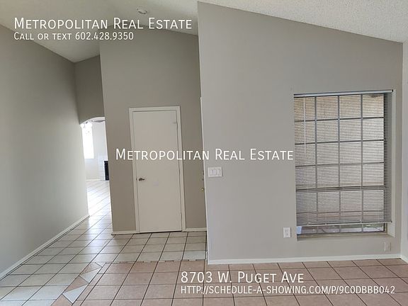 This 1472 square foot single family home has 3 bedrooms and 2.0 bathrooms. This home is located at 8703 W Puget Ave, Peoria, AZ 85345.