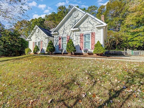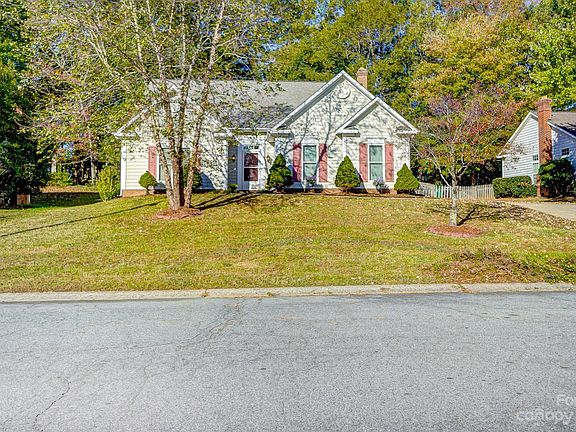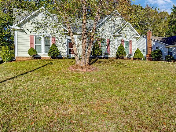 Caiborne Woods-Open concept floor-plan featuring neutral colors, luxury vinyl plank flooring throughout living areas and carpeted bedrooms. Living area boasts a wood burning fireplace, vaulted ceiling's and transom windows. Dining area complete with two columns and a view of the backyard. Kitchen boasts light wood colored cabinets, granite counter tops, stainless steel appliances and refrigerator that stays + pantry! Primary bedroom with recessed ceilings, walk in closet, bathroom with garden tub and stand up shower. Two additional spacious bedrooms and guest bath. Two car garage features a work bench area with shelving. Make your way out back to the fenced in back yard and large patio area perfect for entertaining! Minutes from areas shopping, restaurants and amenities including Mountain Island Lake + Latta Plantation & The Long Creek Greenway. Quick access to I-485, I-77. Home ready for generator hook-up.