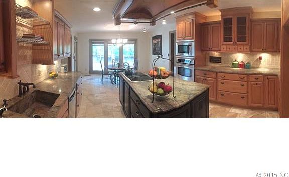 Jenks Schools, Designer Gourmet Chef's Kitchen! Entertainer's Home with 2 family living rooms/both w/fireplaces, 5 bedroom 3/1/2 baths, Covered patio & extensive decking leading to back yard & lovely pool w/ oversize lot. Master & 2nd bedroom/office down
