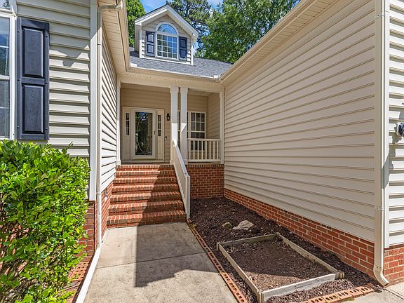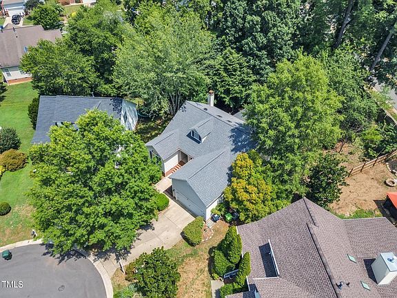 Seize the rare opportunity to own this beautiful home in the highly coveted NW Raleigh area, renowned for its top-rated schools and convenient locale. This versatile floor plan offers the flexibility to function as a 4-bedroom or 3-bedroom home with a dedicated office, thanks to the main floor's layout featuring a primary bedroom, a guest bedroom, and an additional bedroom with elegant French doors perfect for an office or fourth bedroom. Two full bathrooms are conveniently located on the main floor. The heart of the home is an open-concept space that seamlessly connects the kitchen, family room, and dining area, all enhanced by real hardwood floors and high, vaulted ceilings. Step outside to the three-seasons room and enjoy the completely private, wooded backyard, perfect for dining or relaxing al fresco. Nestled on a tranquil 0.33 cul-de-sac lot, this home offers a peaceful retreat in a friendly neighborhood while being just 5 minutes away from two grocery stores and 540. You'll also find Brier Creek and RDU less than 10 minutes away, RTP under 15 minutes, North Hills less than 20 minutes, and downtown Raleigh within 30 minutes. Nature lovers will appreciate the proximity to Umstead Park, only 5 minutes away, and Lakes Lynn and Shelley - known for their resident eagle, just 15 minutes away. For craft brew enthusiasts, Lone Rider is a quick 5-minute drive, and Gizmo Brew Works is just 7 minutes away. The home features a newer 50-year roof, ensuring long-lasting durability and peace of mind. Take advantage of a $4,500 carpet allowance!