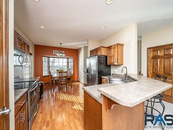 Meticulously cared for Split Foyer Home in Desirable West Sioux Falls Neighborhood! This 4 bedroom, 3 bath home features an open main level with spacious living room and slider to the back deck, a kitchen featuring plenty of custom cabinets and pantry, and a bright dining area with a large bay bump out! The good sized master bedroom boasts a master bath & large Walk In Closet! Solid 6 panel doors, another bedroom & full bath finish off the main level. The lower level features a fantastic family room with built in surround sound, 2 more bedrooms, and additional full bath with tiled floor. The fully fenced in yard features a large deck, stamped concrete patio, New Retaining Wall Flower Bed, garden/storage shed, sprinkler system, & so much more! The two stall HEATED garage includes extra Pull Down Storage in the Attic. Other recent updates include new insulated garage door, water heater, water softener, whole house humidifier, smart thermostat, smart garage door opener, and much more!!