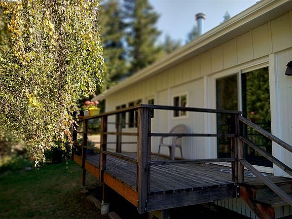 Enjoy end of road privacy on your fully fenced half acre property. This cozy and unique 3 bedroom 1.5 bath home is a 1969 singlewide with stick built add ons, and cabana/roof over the structure. The home has an open floor plan with a bonus room offering lots of storage and a large laundry room and entry area. Soak in the stunning views of mature forest canopy from the redwood deck. Two fruit trees including apple and quince. Two driveway entrances allow for extra vehicle storage. This is your affordable retreat from the city noise pollution, yet close to town. New carpets and paint in the bedrooms. Your end of road oasis awaits!