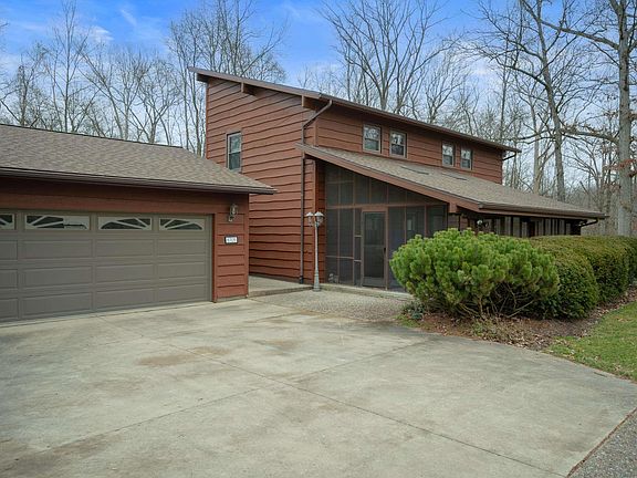 This beautiful home just outside of Upland. Sits on almost 4 acres! Nice 3-4 bedroom home. Nestled in a wooded area. Home offers replacement windows, spacious kitchen w/granite countertops breakfast bar with a breakfast nook, formal dining room, large pantry, bathrooms all updated, whole house water filter 1/23, new taller chimney for wood stove, dishwasher/range(induction) 2023, new electrical in well pump house, 1/24, freshly painted kitchen dining, & bedrooms fall 2023, new light fixtures in kitchen, dining, sunroom & main bedroom vanity. Nice enclosed screened in porch with skylights to enjoy the wildlife. Black paved driveway with concrete paving into garage. Pole Barn with a chicken coop setup up beside it. From the living room and dining room it overlooks the beautiful wooded back yard. So much wildlife right outside your windows. Home is less than a 1/4 mile from Eastbrook South Elementary and Taylor University.