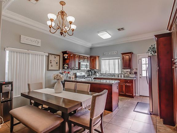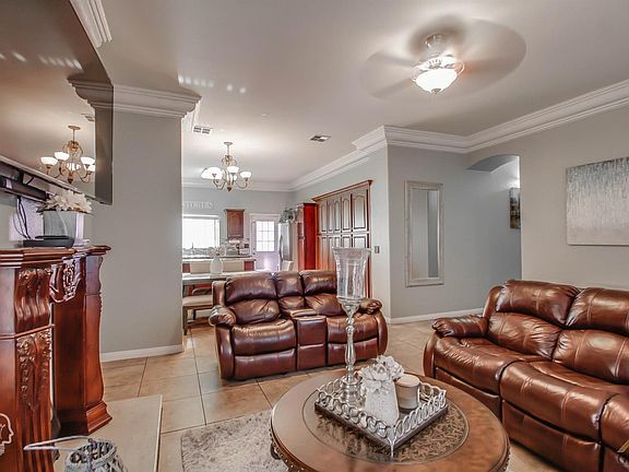 Affordable home located in an established neighborhood in SW Bakersfield. This home offers a desirable open floor plan and high ceilings complimented with beautiful large crown molding. Built in 2005, you can see the pride of ownership in the good overall condition of the home. There is plenty of space in the kitchen now, that the seller has added custom cabinets. Newer paint, 20 inch floor tile and there is a lot of concrete work all around the house. This residence is in a cul-de-sac street and close to parks, walking distance to the new elementary school and easy access to the 99 freeway.