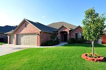 Listing agent: Chris Allen, Call 405-509-9350 for information. Walking up to the front door, you can see the red -rick exterior, three car garage, and landscaping. But what makes this house so special? Upon walking in, you can tell immediately. The living room is covered with warm colors from the golden tile to the painted walls and ceilings. The built in bookcase and wood framed fireplace match the crown molding throughout the room. Two extra long windows frame either side of the fireplace, letting in tons of natural lighting. The office in the front of the house provides a great study space with a built in bookcase and cabinets. Moving into the kitchen and dining area, the color scheme from the living room continues with tile, golden walls and ceilings, and crown molding to match the cabinets. This kitchen offers tons of cabinet space! The granite countertops are dark and sparkle as the light shines on them and reflects from the stainless steel appliances. The dining area has another big window to let all the sun shine through and a door leading into the outside, but we'll save that for last. Walking into the master bedroom, you'll find an extended ceiling, neutral color schemes for easy decorating, and two windows to let in the light. With two more bedrooms, both have big, perfectly positioned windows for letting the sun sink in. One of the rooms is currently being used as a game room, great for having company! Speaking of company, taking a look into the backyard is just absolutely breathtaking. The cedar pergola provides a great space to enjoy the company of others in the great outdoors! There's a stone stacked outdoor fireplace for entertaining as it cools down outside, or even s'mores! With room for a grill and a calming stone waterfall, there's no place else you'd want to be! The community has a playground and a pool for even more entertainment options.With features like this, this house is hot! Call 405-509-9350 and schedule an appointment to see it for yourself. Licensed realtors please call 1-888-474-6996.