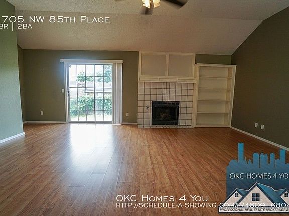 com/lt/46091c804a Open Floor Plan in West OKC Security deposit: $1000 From NW Expressway and County Line Rd, go south to NW 85th St. and turn left. Turn right on NW 85th Place. Featuring 3 bedrooms with a separated master and 2 baths. The open floor plan provides a smooth flow through the kitchen, dining and living room. The living room has a wood burning fireplace. The large master bath has linen storage, walk-thru closet, jetted tub and shower. Although tucked away in NW OKC, there is easy access the NW Expressway and connections to Hefner Parkway, I-44 or the Kilpatrick Turnpike. * Large living and dining rooms. * Spacious kitchen with island. * The kitchen is equipped with an electric cooktop and oven, dishwasher, refrigerator, and disposal. * Master bath has shower and jetted tub. * Walk-in closet in the master bedroom. * Inside utility room. * Fenced back yard. * 2 car garage with opener. * Central gas heat. * Central electric air conditioning. * Year built 1996. * Approx. 1550 Sq. Ft. * Lease term is one year. The owner has asked that it be a nonsmoking and no pet property. This property is not available for Section 8 housing assistance.