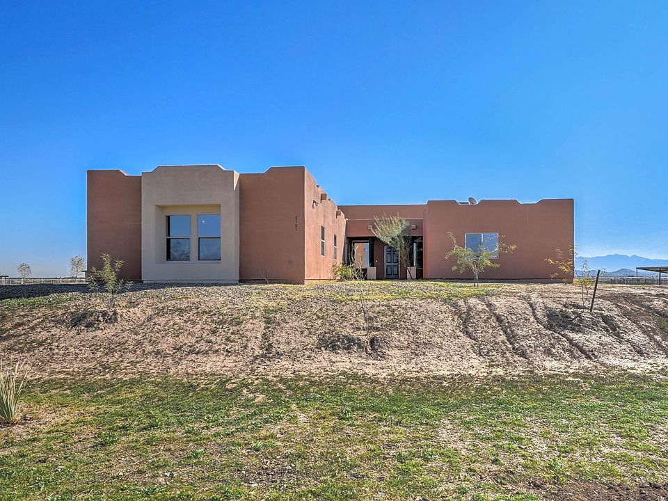 ''HONEY PACK UP THE KIDS, HORSES AND OUTDOOR TOYS'' WE HAVE FOUND A HOUSE TO HOLD IT ALL...BEAUTIFUL SINGLE STORY SANTE FE STYLE HOME ON 2 ACRES WITH NO HOA AND HORSE STALLS READY TO BE FILLED. NICE SIZE BEDROOMS (4) & BATHROOMS (2.5). ENTIRE HOUSE WAS JUST PAINTED BOTH INSIDE AND OUT. BRAND NEW NEUTRAL TWO TONE PAINT INSIDE TO MATCH THE NEUTRAL TILE AND CARPET, OPEN FLOORPLAN, SPACIOUS BATHROOMS, JACUZZI TUB, JACK AND JILL BATHROOM FOR 2 OF THE ROOMS, UTILITY SINK IN LAUNDRY ROOM RIGHT BY GARAGE ENTRANCE INTO HOUSE, WOOD DOORS, COVERED PATIO THE LENGTH OF THE HOUSE, 3 CAR GARAGE, BEAUTIFUL MOUNTAIN VIEWS, ARIZONA SUNSETS AND EVENINGS ON HORSEBACK. DID YOU HEAR THE NO HOA PART AND HORSES ALLOWED PLUS THE OPTION TO IRRIGATE TO BRING IN SOME GRASSY AREAS IF YOU DESIRE. DON'T WALK, RUN!!