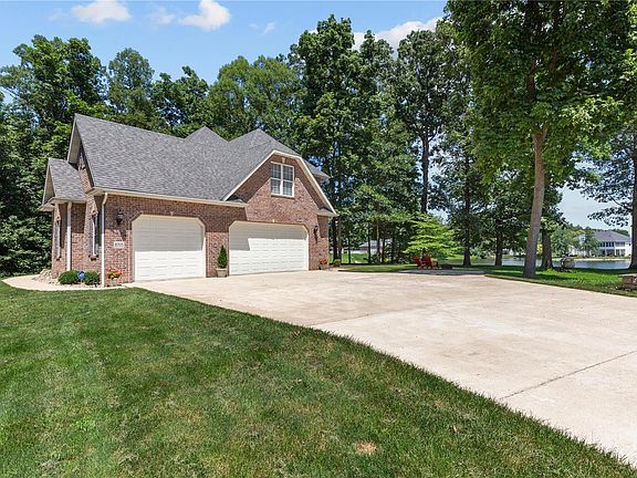 LOVE WHERE YOU LIVE! Immaculate lakefront home situated on 3/4 acre at the end of a wooded cul de sac. Gorgeous views of the lake from almost every room in the home! This custom built home offers tons of extras including a sunroom, 2 fireplaces, formal dining room, large office, walk in pantry, 3 car garage (19x31) w/workbench & sink, zoned HVAC, Anderson windows, hardwood flooring & new carpet. Kitchen is well appointed w/ solid surface counters, Schmidt hickory cabinetry, stainless appliances & center island. Main floor laundry and a minimum of 1 full bath on every level of the home. Master suite overlooks the lake w a sitting area & very nice size bath & walk in closet. Side walkout lower level features family room, rec room, huge storage room & addt'l patio. Looking for something to do? How about fishing from your private dock in the stocked lake, take a boat ride or go for a swim at the clubhouse pool. This home & location are the total package!