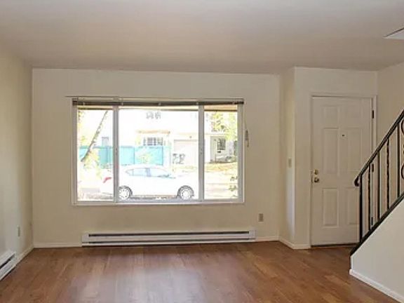 Carpet upstairs, LVT (looks like oak hardwood) downstairs. - Cute kitchen with dishwasher, electric range, fridge - Master bedroom with balcony and views, double closet - Newer, energy efficient vinyl windows and sliders - W/D hookups -1 covered parking spot, 2 off-street spots total, ample on-street parking (no RV's, boat or trailers allowed) - Fully fenced backyard - Water, sewer, garbage and landscape maintenance are all included - Desirable, quiet, Sellwood location with shopping, dining, parks, entertainment and new Orange MAX line nearby - No smoking, pets negotiable 1 year lease. Owner pays trash/recycling/compost and monthly yard service. Tenant pays $75/month water surcharge. Tenant also pays for electricity. $25/month pet rent.