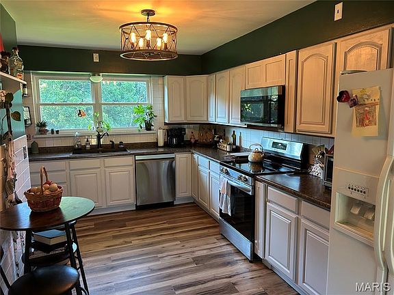 The Country is calling! Visit this 3 Bedroom/2 Full Bath Ranch Home with lots of updates! Modern colors, New Appliances & Floors (2023), New Roof (2023) on an open/mostly flat 1.88 Acres, with No HOA! The 2 Car Garage is extended with a workshop area. The Basement is finished with a large Family Room and cozy Fireplace, along with 2 additional bonus rooms, and a walk-out door, leading to large patio space. There's a Detached Garage/Shed, and even a large Chicken Coop (chickens are negotiable). Don't miss this one!