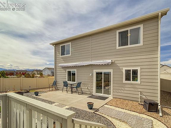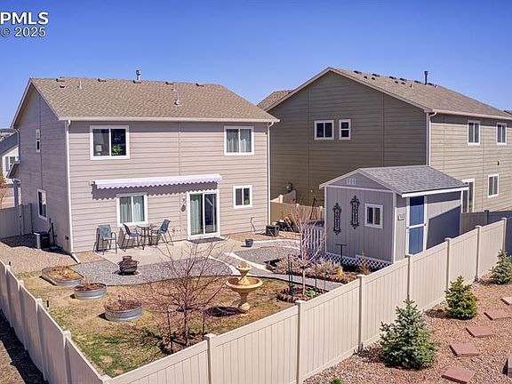 Prime location next to a large park, with a fenced in dog park, on the side of this beautiful 3 bed 3 bath home. Giving you stunning Pikes Peak Views. The landscaping is complete in both the front and backyard, ready for you to enjoy this summer. The 10x12 She Shed is custom built, offering a backdoor and a porch! Check out the mountain views from there. Enjoy the summer evenings on the large 10x20 patio with the automated awning! Brand new carpet welcomes you upon entry. The open floorplan allows plenty of space to enjoy your family and friends. Kitchen has ample counter and cabinet space, plus a pantry. Upstairs you will find three bedrooms and the laundry. Grab your favorite book and enjoy the private sitting area in the master bedroom! Home is within 5 minutes of Penrose St Francis Hospital. Easy access to Woodmen, Powers and I25. Close to shopping, schools, restaurants and so much more! Come see this one today!