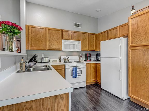 Hard to find Littleton end unit condo in gated community well located within walking distance of parks, lakes, open space, golf, shopping and dining. Inviting floor plan provides open concept living uniting the living room, kitchen and dedicated dining space. The living space features a large sliding glass door for spending time outside grilling or relaxing on the covered deck or enjoy the entrance patio. The spacious primary suite bedroom features a walk-in closet as well as linen closet and private ensuite bath with large oval soaking tub and double vanity. The generous secondary bedroom has large double closets next to another full bathroom. Washer and dryer is situated between the primary and secondary bedroom for easy access. Newer laminate flooring installed and several other updates throughout. Roof was replaced in 2022 as well as a brand new furnace and A/C installed.