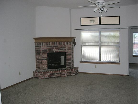 A must see! Only minutes from Tinker. Spacious open floor plan with corner fireplace, lots of windows and kitchen with island. Master Suite features wrap around closet, tub, separate shower, and double sinks. Large backyard with covered patio and deck - a great place to cook out or relax. New interior paint, deck just painted. You are going to love this home!