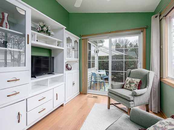 Enjoy maintenance free living in this beautifully updated one-level townhome! Featuring an open and spacious vaulted great room with cozy fireplace and updated wood flooring. Relax and unwind in the bright sun room wrapped in windows letting the natural light pour in. Two bedrooms, including a large primary suite with vaulted ceilings, a walk-in closet and a private bathroom. Enjoy the expansive kitchen with updated counters and cabinets with additional built-ins added for extra storage. Located just minutes to shopping, restaurants and more!