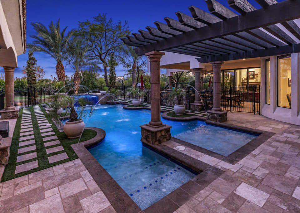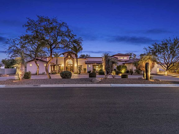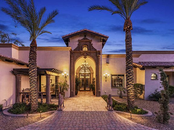Exquisite Mediterranean custom estate situated on a north/south one-acre lot in the highly desirable Cactus corridor. This stunning property was built in 2008 and constructed utilizing the highest quality craftsmanship and materials. An entertainer's dream home that has a large Gourmet Chef's kitchen that opens into the spacious family room and bar area that includes a temperature- controlled wine cellar. Open the family room's fully automated sliding doors and experience the true Arizona indoor/outdoor lifestyle. Just off the family room is an inviting game room and movie theatre. Home boast a grand master suite that includes a spa like bathroom, his and hers closets and an exercise room. A complete 800 square foot guest house! The finest finishes complete this entertainers home! NO HOA Just outside of the Master Bedroom you will find a large office/den and down the hall are three additional bedrooms. Your guest will enjoy the attached casita that includes a bedroom suite and kitchenette. The back yard showcases a magnificent resort like pool with an elevated spa and water features, a sport court, putting green and a large natural grass area. The Outdoor kitchen includes a gas grill, smoker, Wok burner, ice bucket, refrigerator and kegerator. Words do not do this home justice. This estate is a "Must See"...