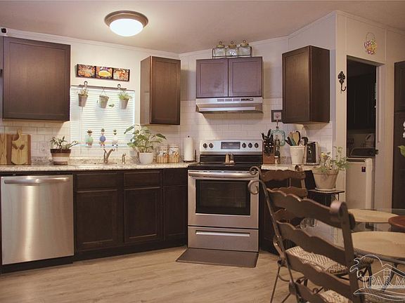 Conveniently located in East Milton with easy access to I-10. Nestled in a country setting, on almost a half acre, Completely remodeled with 3 bedrooms and 2 full baths. Updated kitchen with plenty of storage and stainless steel appliances, Separate laundry area, Sliding glass doors lead off to a small covered back deck. A large Owners bedroom and bath with a garden tub & separate shower, Double vanity sinks. Kitchen appliances, washer and dryer convey. Storage shed for your convenience. RV Hook up on right of property. Schedule your showing today!