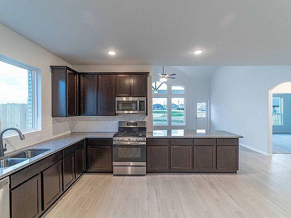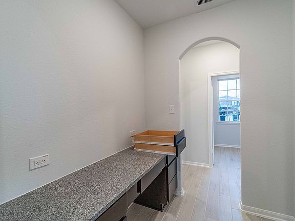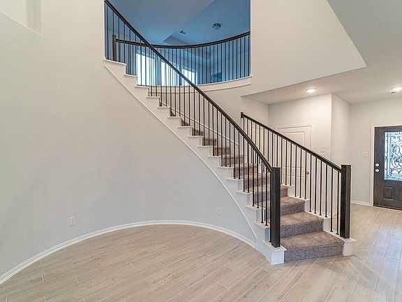 A contemporary design with traditional elements, the San Marcos plan offers a unique layout that suits most any lifestyle.. As soon as you enter this elegant home, you are met with the convenient downstairs powder room, a walk-in utility room, and a beneficial computer niche that connects to your spacious kitchen. You are also met with your two-car garage that you have the ability of transforming into a two-and a half -car or three-car garage providing excellent storage space. Amidst your elegant staircase is the curved dining area that adds a custom feel to this innovative design. Across from the unique dining space is the kitchen featuring granite countertops, a walk-in pantry room, a raised bar perfect for when the kids eat breakfast each morning, as well as the option for a kitchen island if you are needing additional counterspace. The kitchen opens up into the massive family room, creating a great space for entertaining gatherings of any size for any occasion. If you crave quality time spent outdoors, the San Marcos plan offers you the option of a huge covered patio that your whole family and friends can enjoy. Completing the first floor is your secluded master suite. Your master bathroom is complete with separated dual vanities with cultured marble countertops, a bathtub, a stand-alone shower, and an enormous walk-in closet. Enhance your master bathroom by including a super shower instead of a bathtub! Wander up the stairs, where you will find a perfectly-sized gameroom