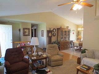 This home sits on a nice, completely fenced 4 +/- acres with a good sized shed, complete with electricity and chicken coop in place. Also a nice garden shed for all your supplies right in your backyard. Through the dining room patio doors you can access a welcoming, covered, timber tech deck to enjoy those nice Kansas days. Well maintained home. This house is move in ready - large family room in the basement in addition to good sized bonus room, bathroom and organized storage room with large sink. Decorative windmill in the backyard does not stay with property. (Listing 6251882 Confirmed 1/30/2014)